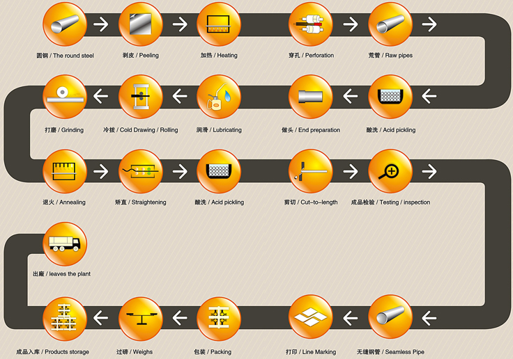 生產線配備了冷拔機、冷軋機、天然氣高溫固溶處理爐、密閉式酸洗設備、矯直機、材料試驗機、渦流探傷儀、超聲探傷儀、理化室CS分析儀等各種生產及檢測設備,從產品原料到生產每道工藝都嚴格檢測、有效控制。